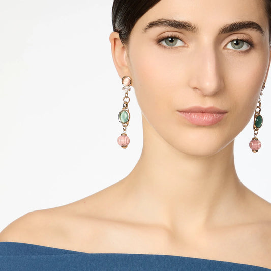 Orecchini pendenti chandelier con top smaltato e frangine con perline - Gipsy