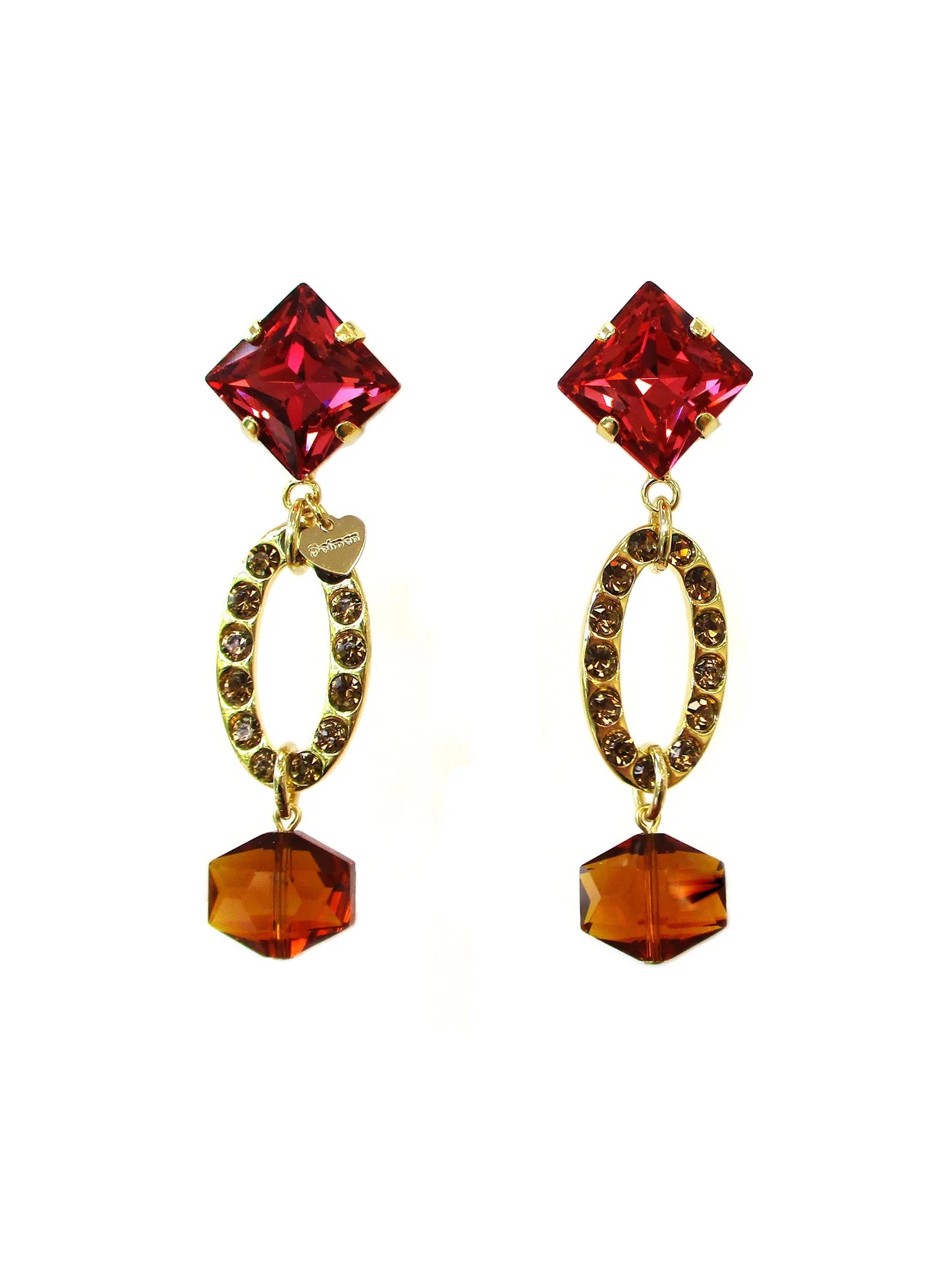 Orecchini pendenti con elemento ovale in metallo e strass Tamarindo