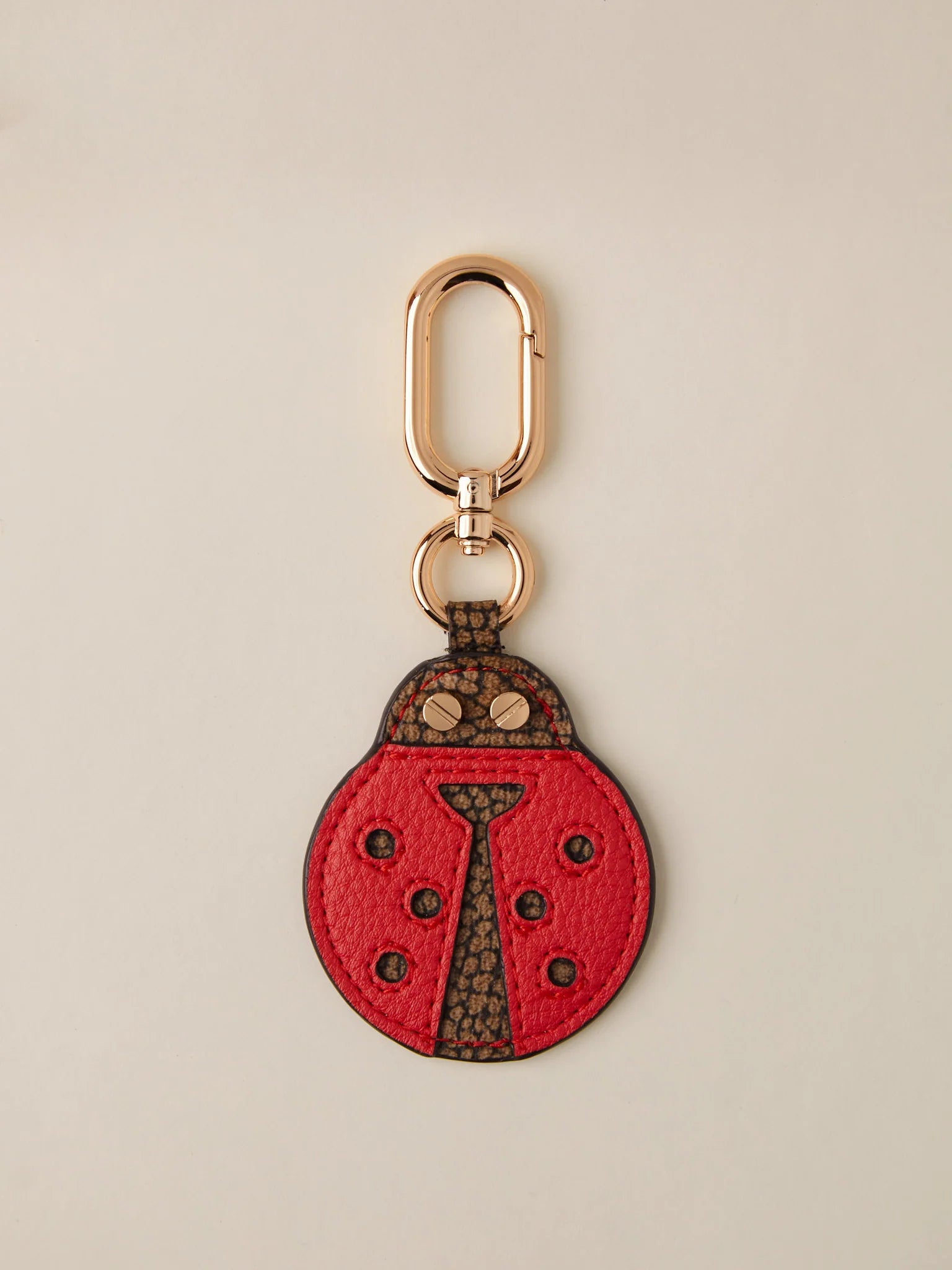Una coccinella portafortuna è il simbolo del portachiavi di pelle e tela rivestita OP. Il moschettone è di metallo con galvanica oro chiaro. Può essere utilizzato come decorazione per impreziosire la tua borsa preferita.