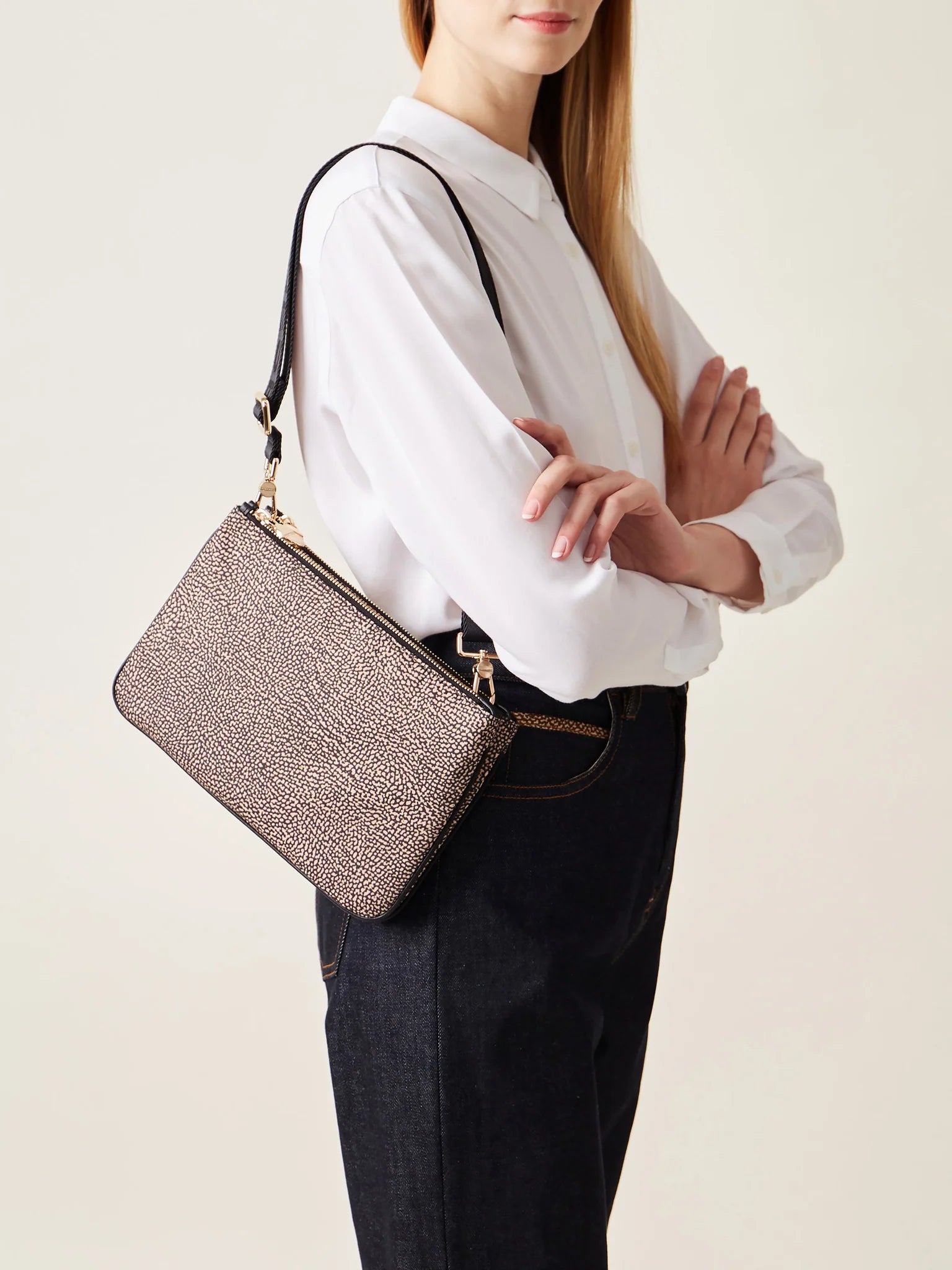 - Tracolla regolabile e removibile di nastro logato
